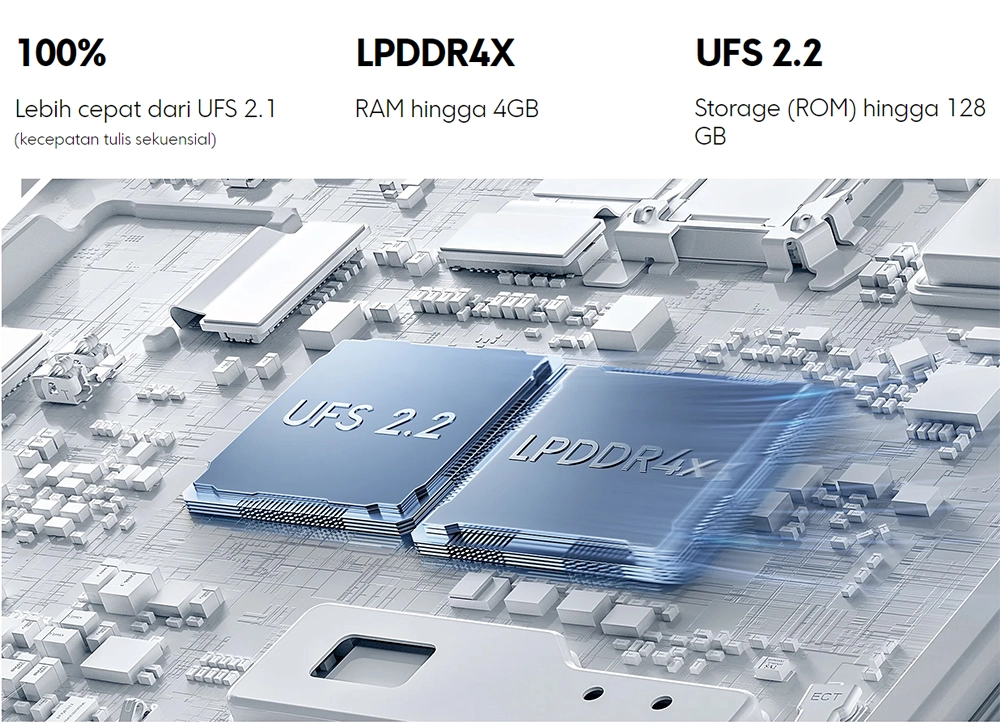 LPDDR4X + UFS 2.2 Kombinasi penyimpanan kecepatan tinggi untuk performa yang baik. Tidak perlu menunggu untuk bersenang-senang, karena aplikasi sehari-hari berjalan dengan lancar dan game dimuat dengan cepat! Ekstensi memori 1 TB dengan kartu dengan ruang yang lebih besar untuk hiburan maksimal.